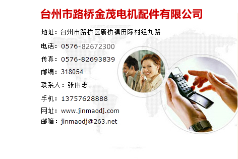 2008-2030 版权所有 (C) 台州市路桥金茂电机配件有限公司 地址:台州市路桥区新桥镇田际村经九路 电话:0576-82672300